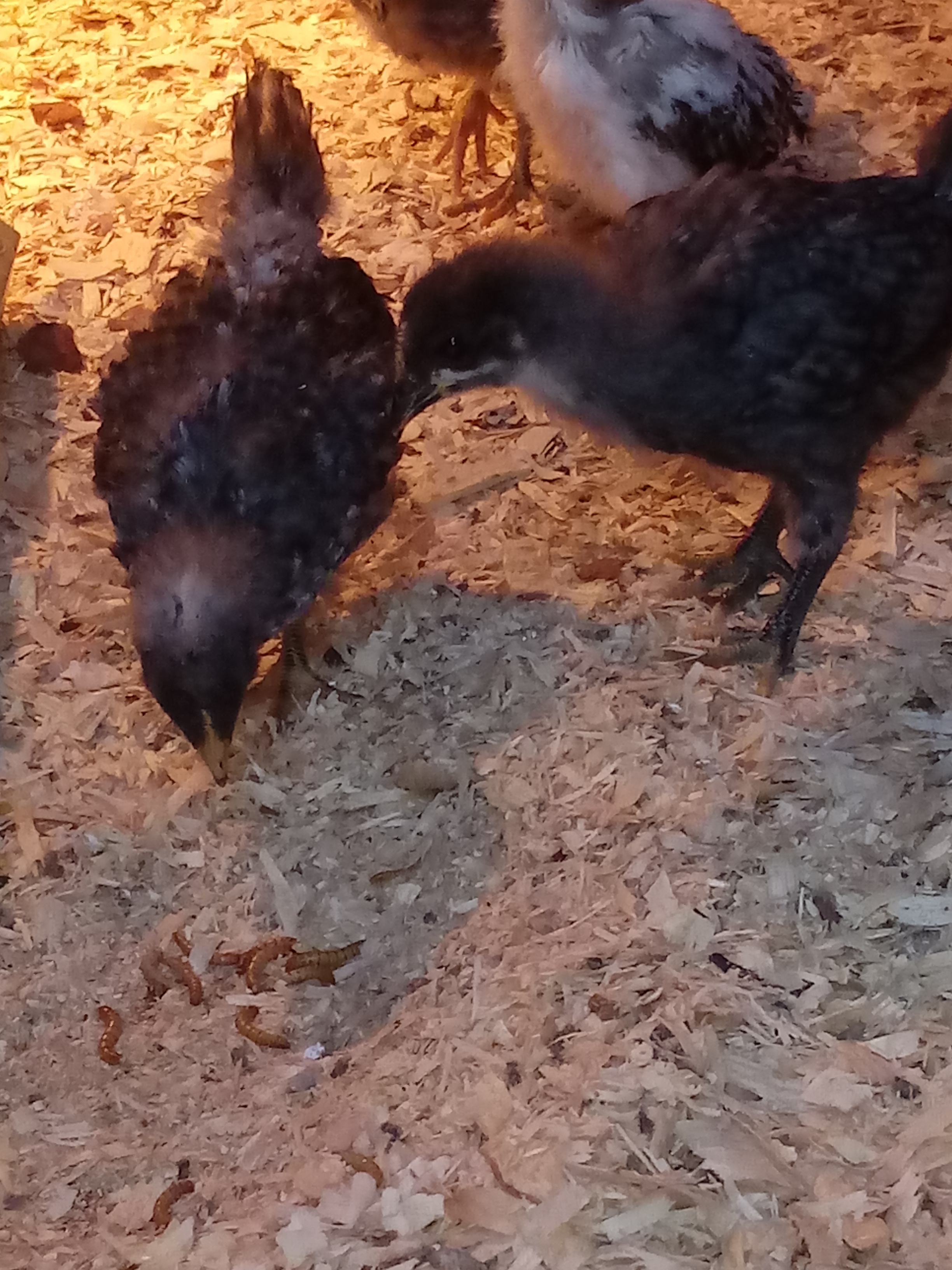 1st experience with mealworms! It took a while to catch on but they got it!