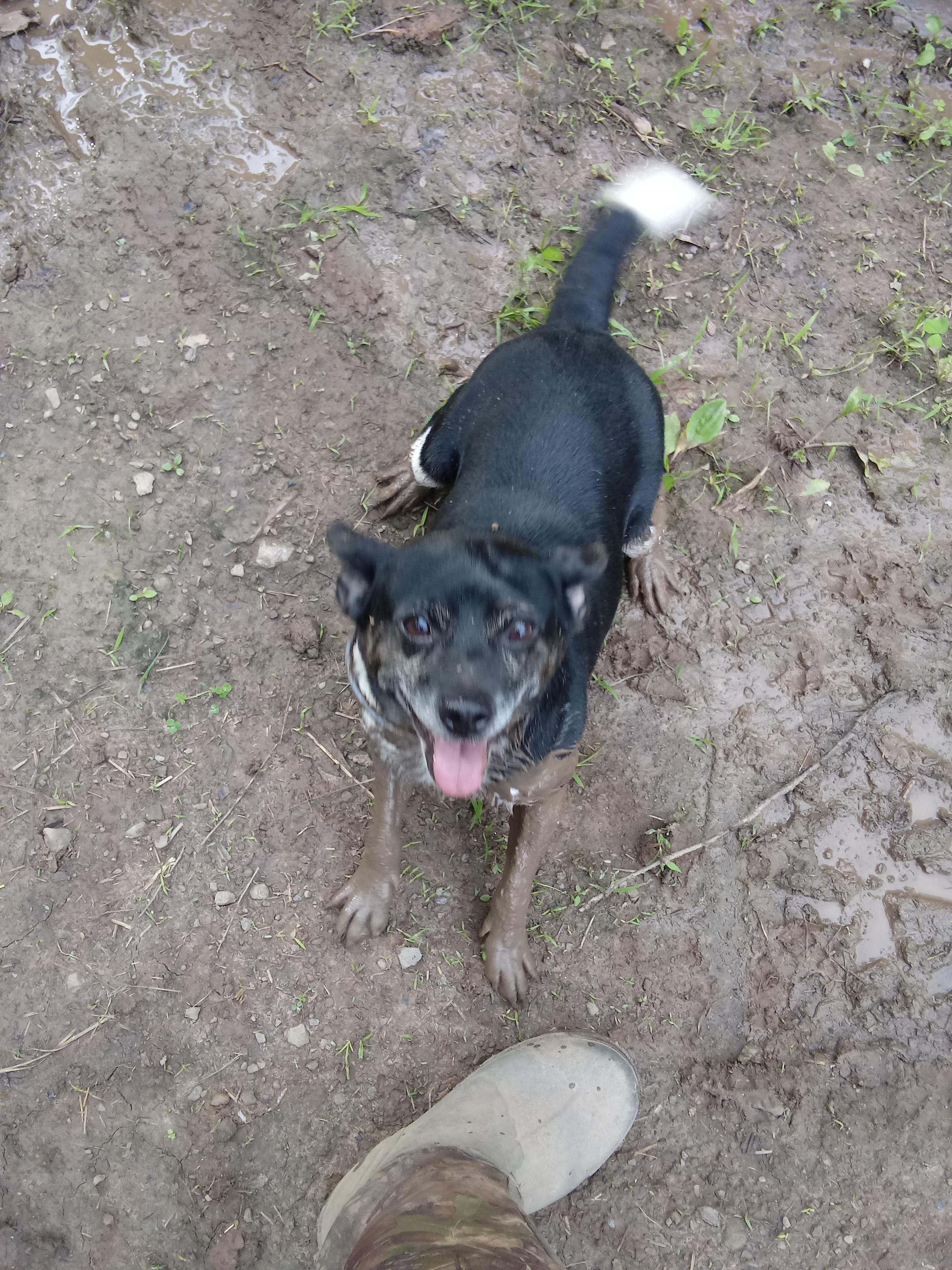 Bentley is still pulling the not coming back in the house stunt with me! 😏 So this evening instead of his ball (which he is absolutely obsessed with), he was forced to play with bark I’d tossed into the creek, that he immediately retrieved! 😂 He hopped, jumped and ran around all proud of himself! It was cute!