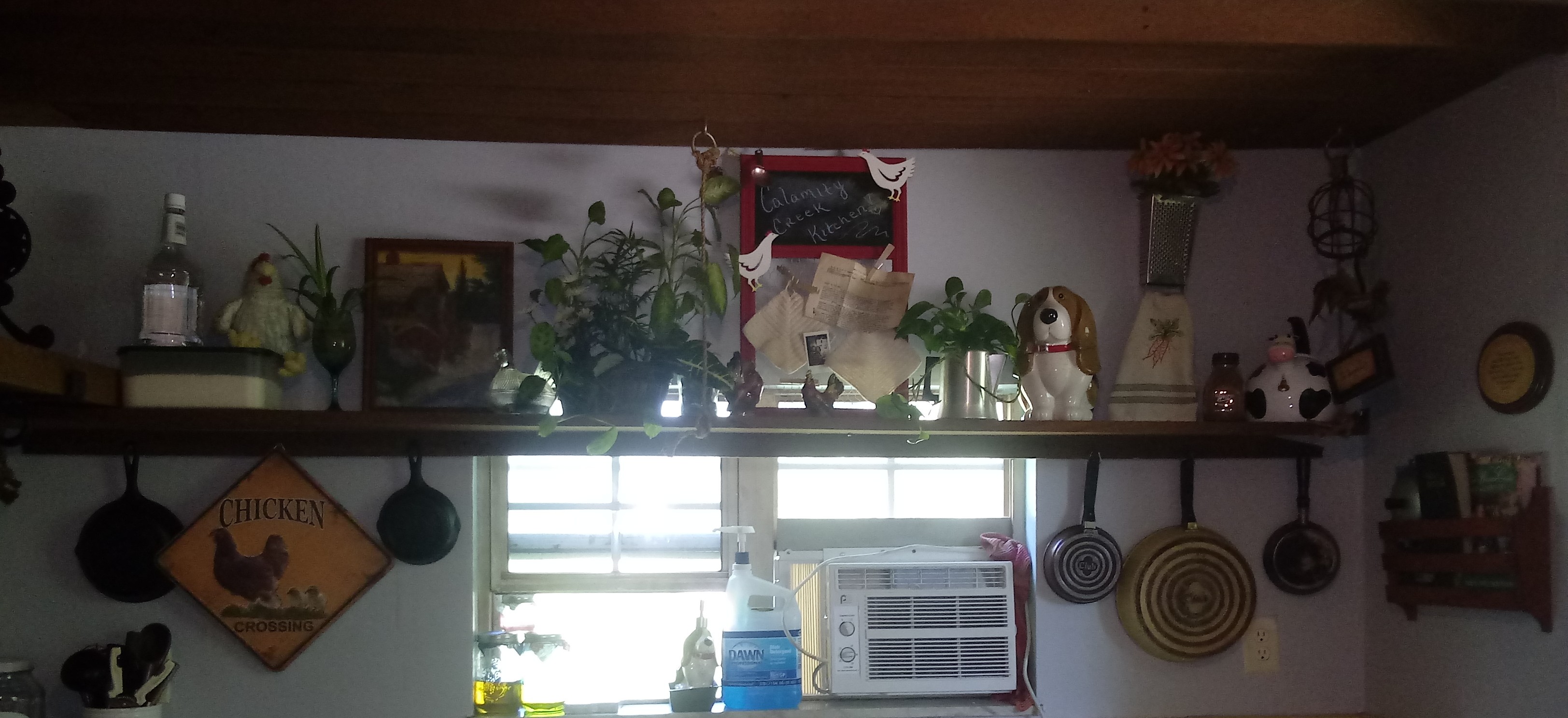 I painted above the kitchen sink and shelf! Went from blah white to gravity gray! I like it. 🎨 (the large vodka bottle is for homemade things, like disinfectant spray to be clear lol)! 😂
