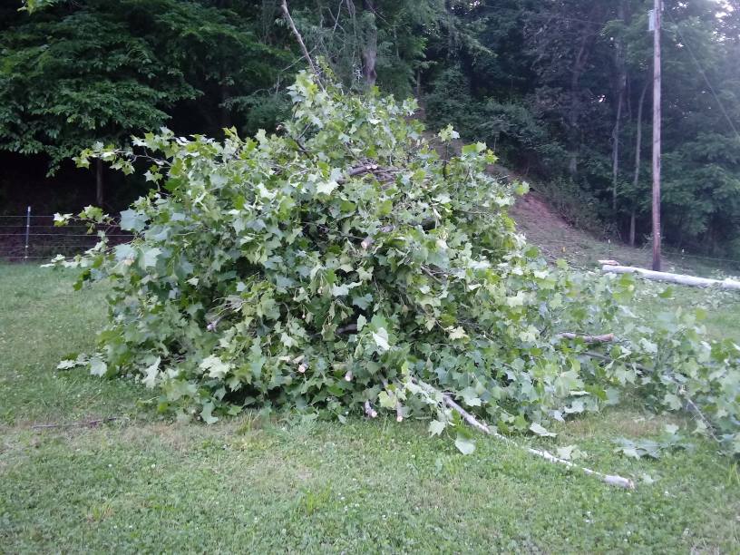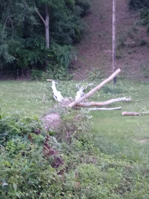 The guide wire for the pole is in that mess and our fence! It didn’t hit any fence posts or break the fence but it definitely required some mending which we done this evening along with tree clean up. My brother in law got wood for his outdoor burner, my sister brought dinner over, our neighbor & two sons showed up and a friend from the down the road stopped by. We are blessed, truly! ❤️