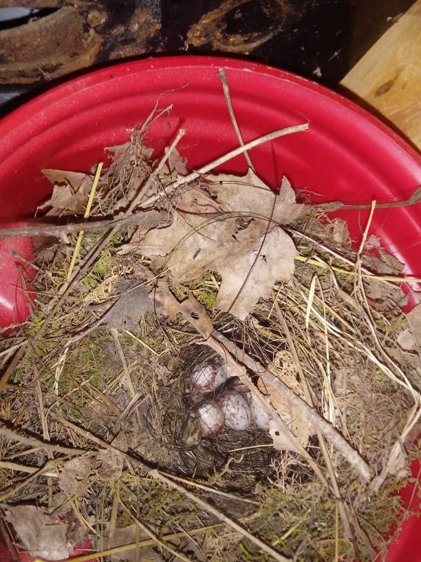 Bargain BettyOh and I had to eat my on the run breakfast with my fingers & a piece of babe’s muffinHe cheered me up entire for hayA bird nest & eggs in an old coffee can in the barn